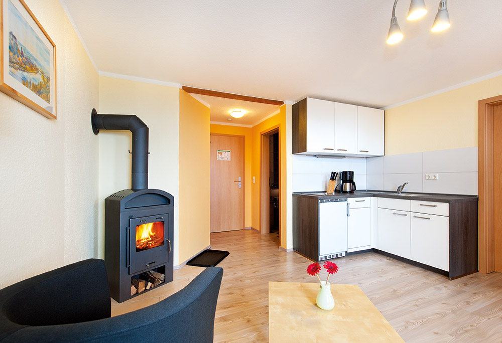 › Einbauküche mit Spülmaschine, Kaminofen