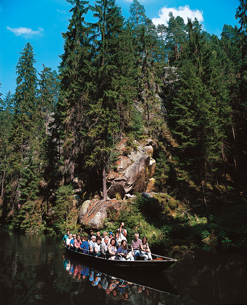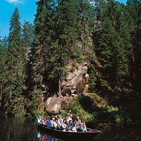 Obere Schleuse in Hinterhermsdorf - die 700 m lange Stauanlage mit Kahnfahrt diente früher der Flößerei. Eine Kahnfahrt in der wildromantischen Kirnitzschklamm ist ein wunderschönes Naturerlebnis. www.hinterhermsdorf.de/obere-schleuse.html