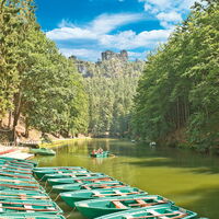 Amselsee bei Kurort Rathen - hier können Sie mit Ruderbooten inmitten einer fantastischen Felskulisse den 600 m langen, künstlich angelegten Stausee befahren.