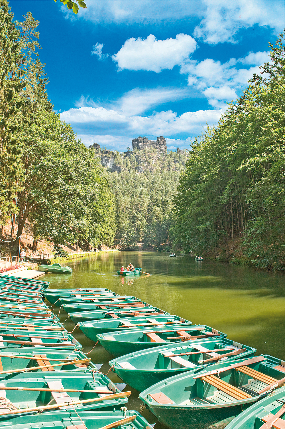 Amselsee bei Kurort Rathen - hier können Sie mit Ruderbooten inmitten einer fantastischen Felskulisse den 600 m langen, künstlich angelegten Stausee befahren.